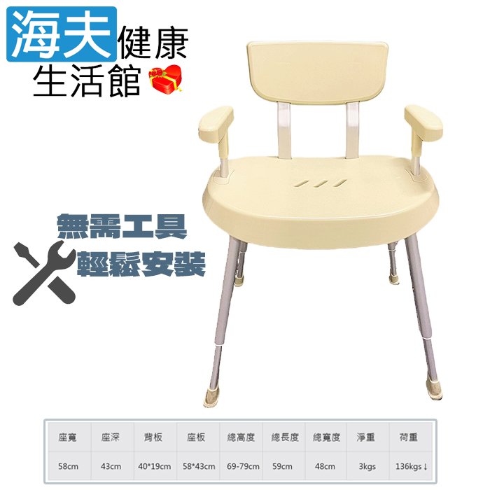 【海夫健康生活館】悅康品家 日安系列 坐墊溝槽設計 Gentle 坐浴洗澡椅(有背款)