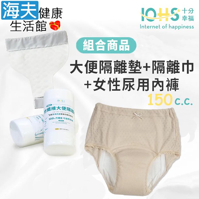 【海夫健康生活館】IOHS十分幸福 日本女性速吸尿用內褲150c.c.裸膚色(2代)+大便隔離墊+隔離巾