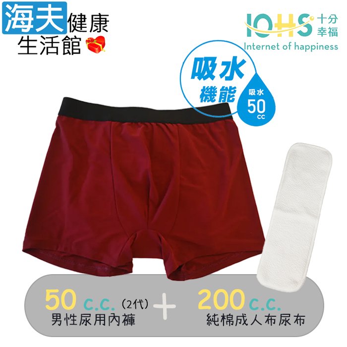 【海夫健康生活館】IOHS十分幸福 日本速吸男性尿用內褲純棉50c.c.紅(2代)+成人布尿布200c.c.