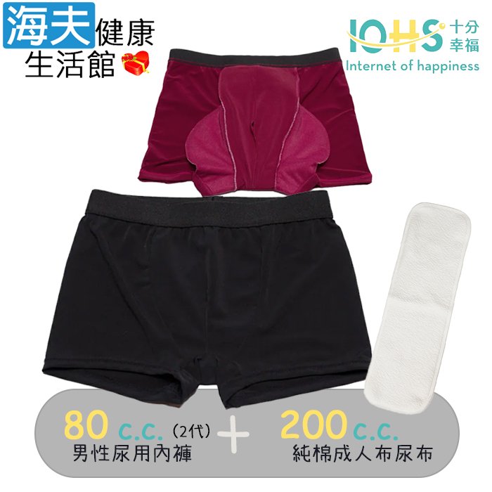 【海夫健康生活館】IOHS十分幸福 日本速吸男性尿用內褲純棉80c.c.(2代)+成人布尿布200c.c.