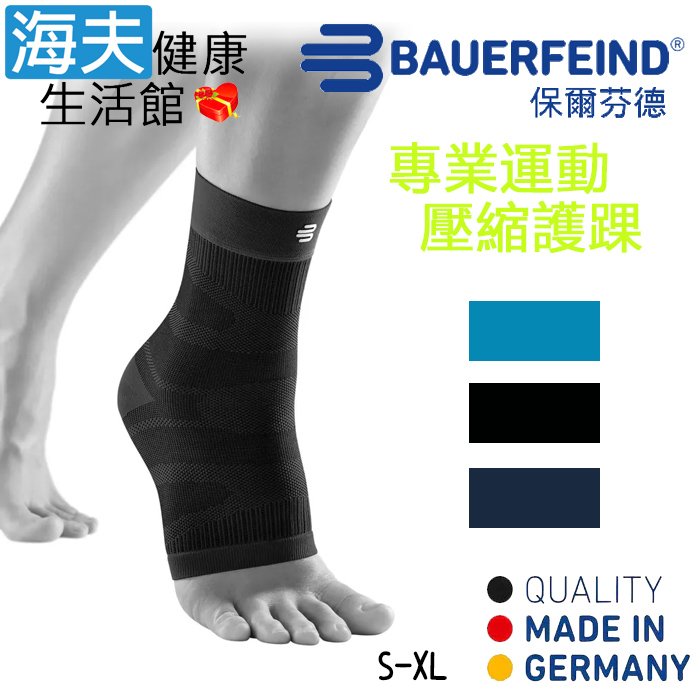 【海夫健康生活館】Bauerfeind 保爾芬德 德國原裝 專業運動綁帶護踝 藍黑(XS-XXL)