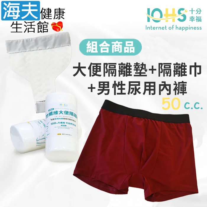 【海夫健康生活館】IOHS十分幸福 日本速吸男性尿用內褲純棉50c.c.紅(2代)+大便隔離墊+隔離巾