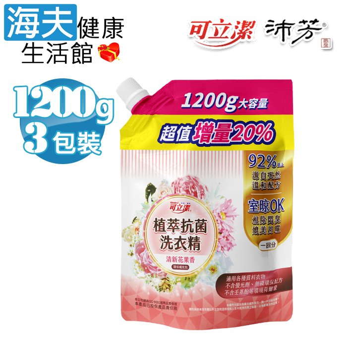 【海夫健康生活館】眾豪 可立潔 植萃抗菌洗衣精 增量版(1200gx3包裝)