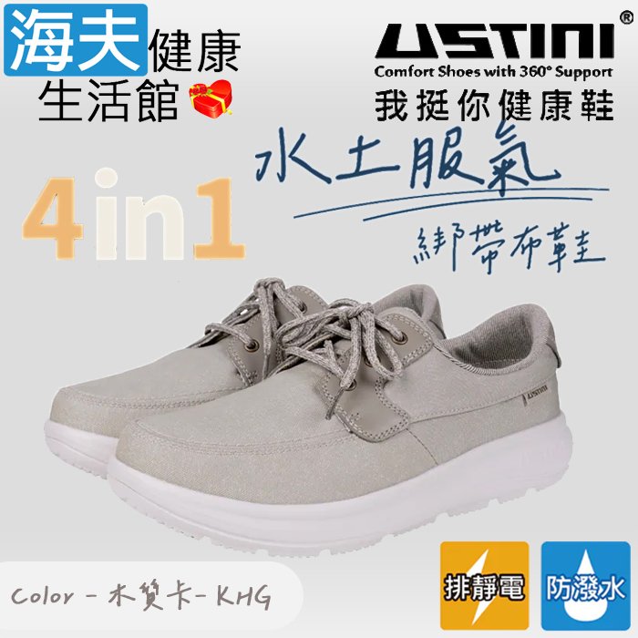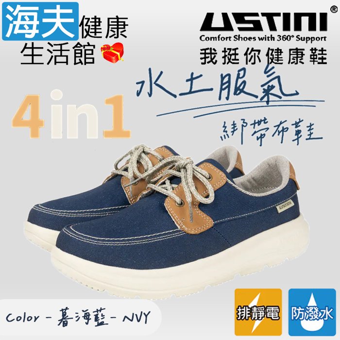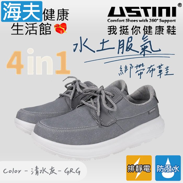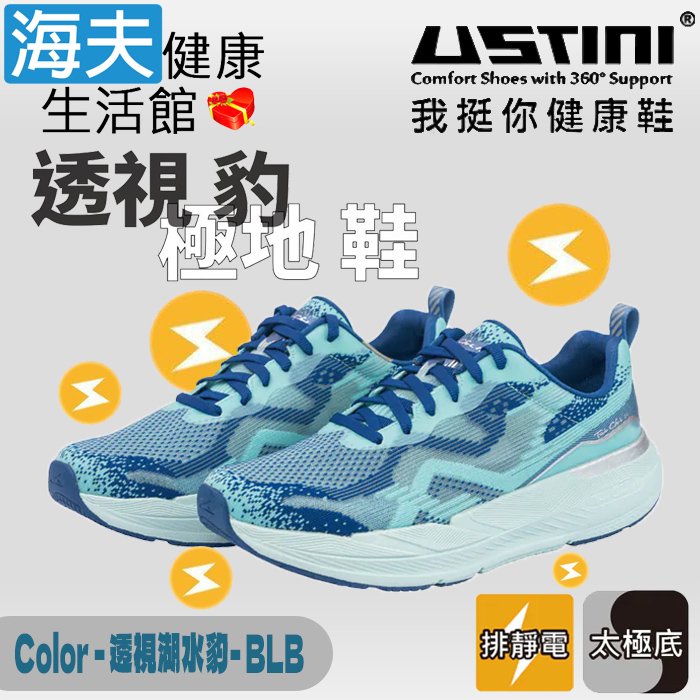 【海夫健康生活館】USTINI 專利接地氣技術 極輕透視豹極地鞋 透視白藍豹 男款(UET1006-WBB)