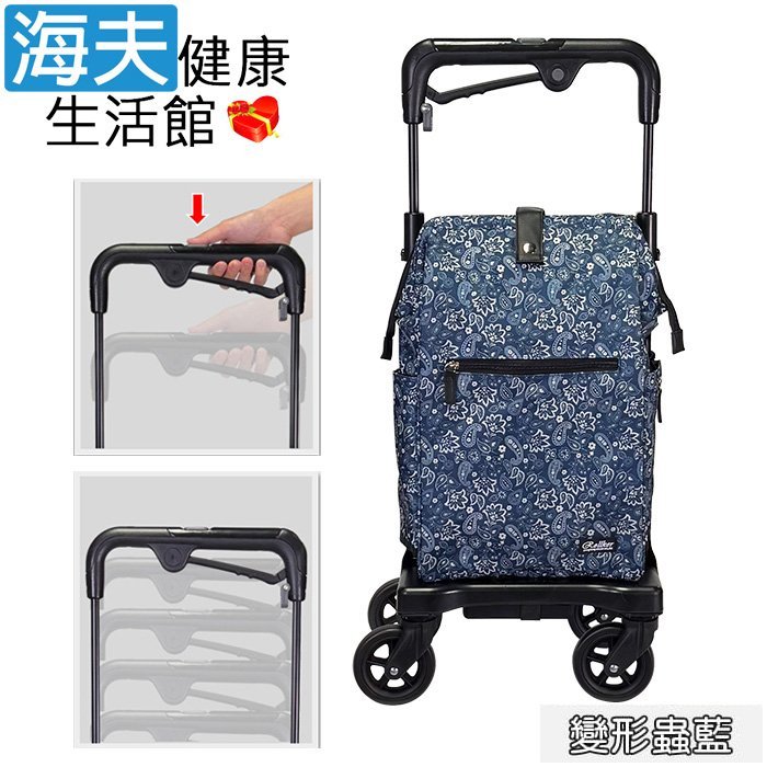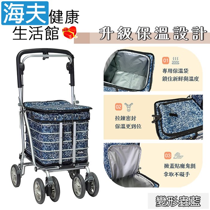 【海夫健康生活館】YL 置物大空間 保暖袋設計 銀髮族 購物助行車 變形蟲藍(NO.68-114)