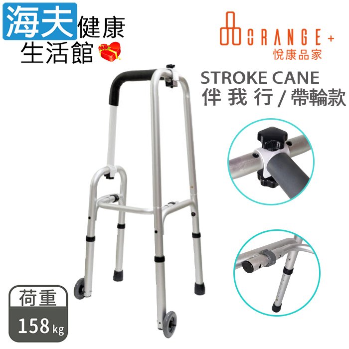 (D)澐禾醫療用手杖(未滅菌)【海夫健康生活館】悅康品家 伴我行 Stroke Cane 單手助行器 (帶輪銀色款)