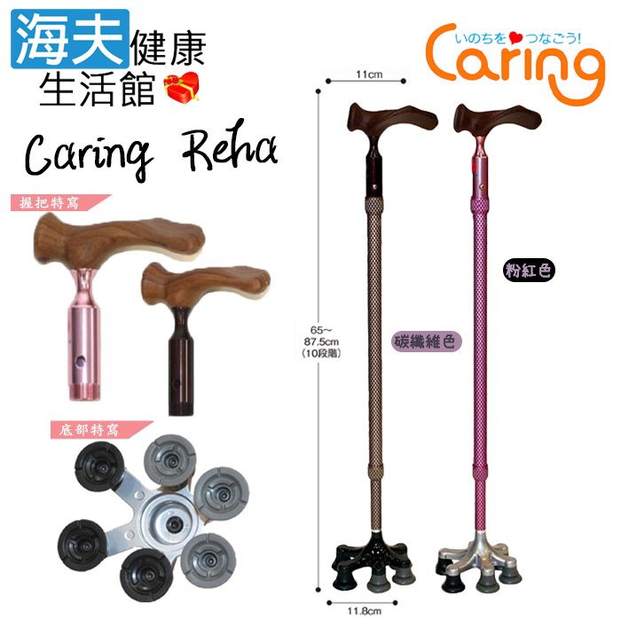 聖侑醫療用手杖(未滅菌)【海夫健康生活館 】Caring Super stick 多點杖(粉紅色/碳纖維色)
