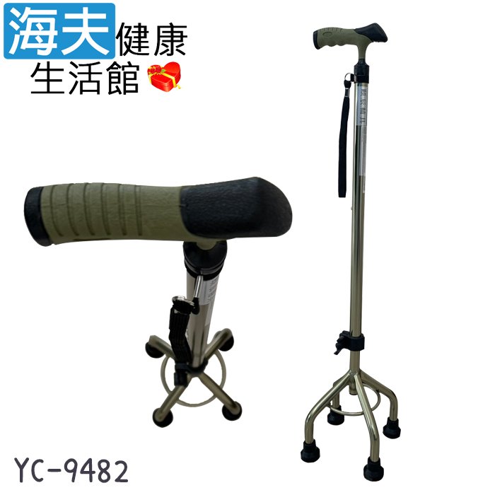 頤辰億 醫療用手杖(未滅菌)【海夫健康生活館】鋁合金 可調式四腳拐 手把型 迷你小爪手杖(YC-9482)