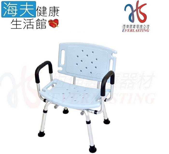 【海夫健康生活館】恆伸 專利新型 鋁合金 大靠背 有扶手 洗澡椅 沐浴椅 水藍色(ER-50005)