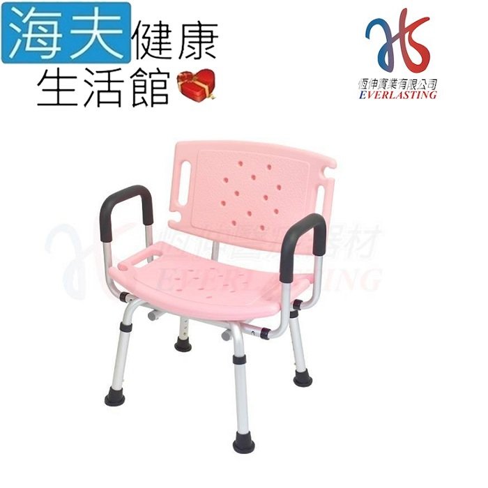 (D)【海夫健康生活館】恆伸 專利新型 鋁合金 大靠背 有扶手 洗澡椅 沐浴椅 粉紅色(ER-50005)
