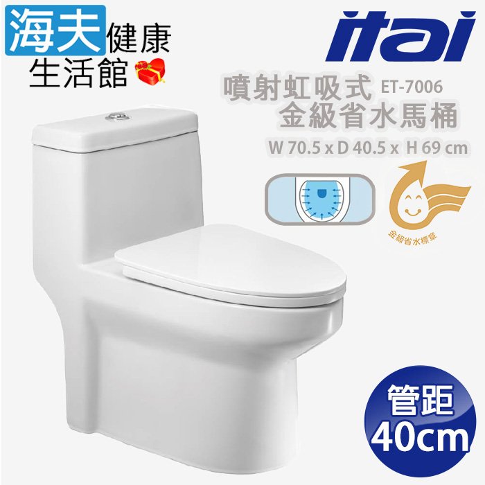 【海夫健康生活館】ITAI一太 陶瓷抗汙釉面 噴射虹吸式-金級省水馬桶 70.5×40.5×69 cm(ET-7006 管距40cm)