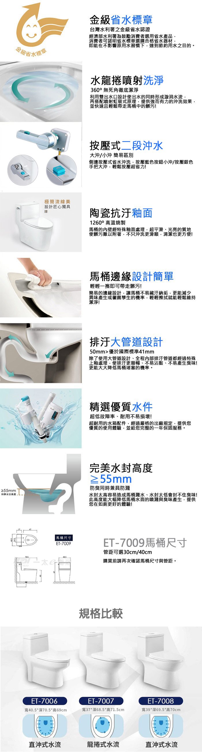 ◆ 型號:ET-7009(龍捲式水流-噴射虹吸式)X1入