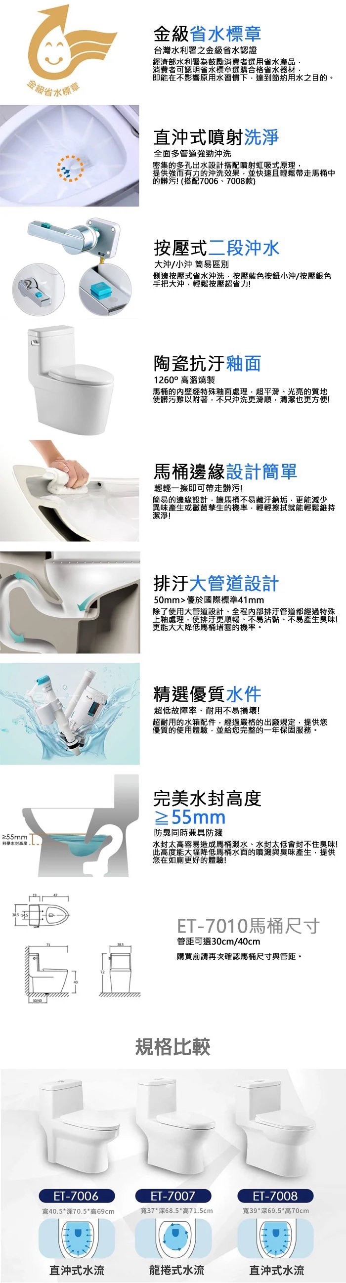 ◆ 型號:ET-7010(噴射虹吸式)X1入
