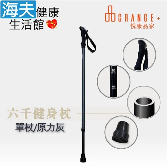 【海夫健康生活館】悅康品家 輔助起身 杖身加厚 EVA手把 六千健身杖 單杖 原力灰
