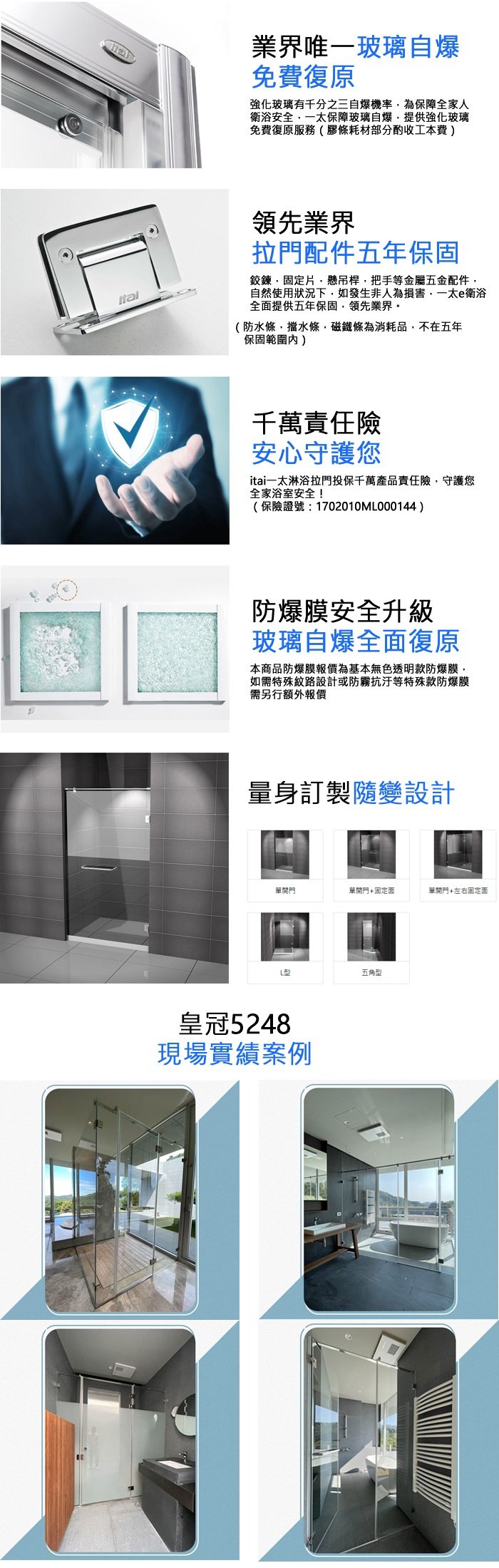 ◆ 型式:L型+單開門+雙固定面 / 強化玻璃-8mm X1入