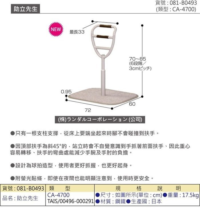 產品特性: ◆ 只有一根支柱 床上起身腳步不易碰觸 ◆ 握把球拍造型 更好抓握 ◆ 附夜光貼條 晚上也能注意到 ◆ 日本製造 品質有保證