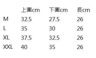 M:上圍32.5cm ,L:上圍35cm ,XL:上圍37.5cm ,XXL:上圍40cm |
