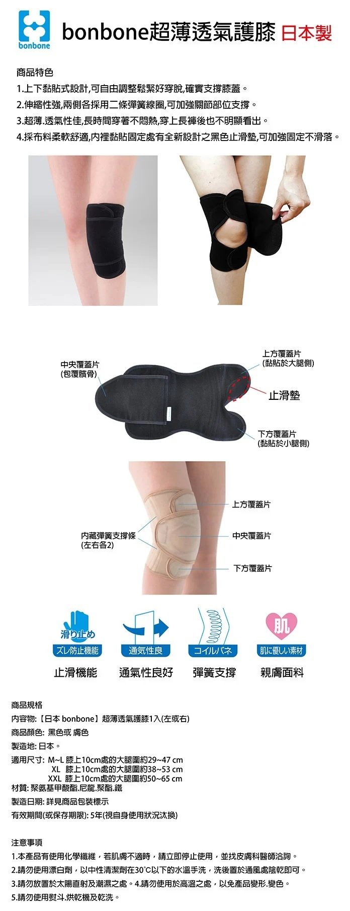 ◆ 上下黏貼式設計 可自由調整鬆緊好穿脫 確實支撐膝蓋