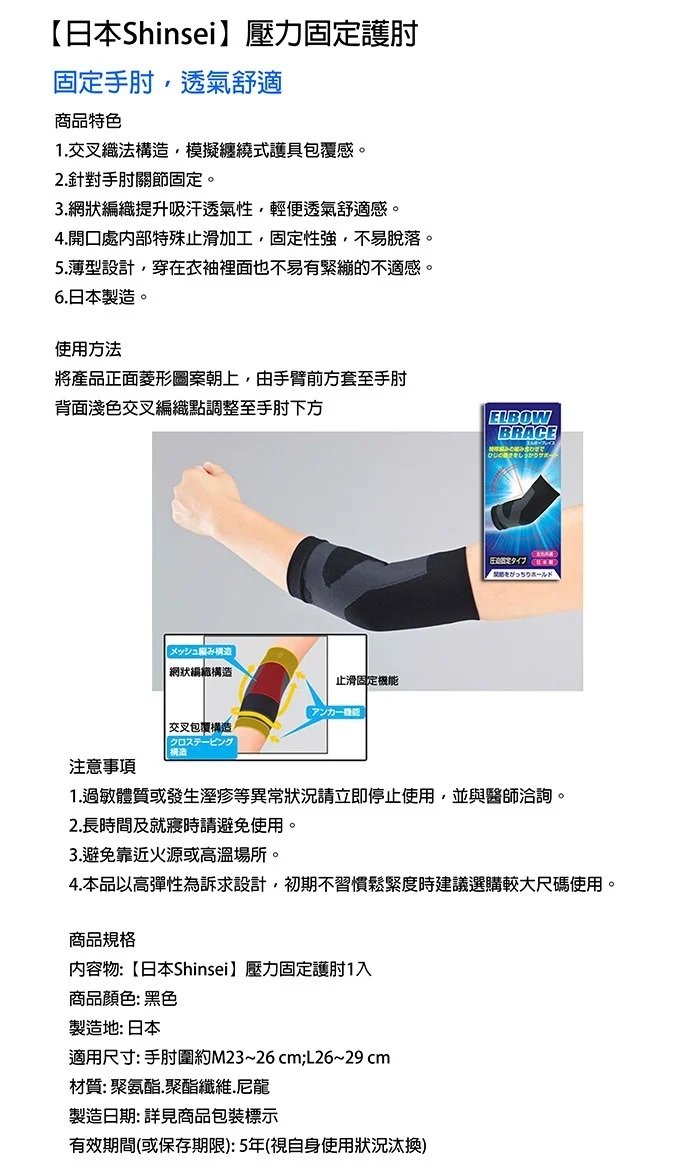 欣陞肢體裝具(未滅菌)【海夫x金勉】日本 Shinsei 壓力固定 護肘