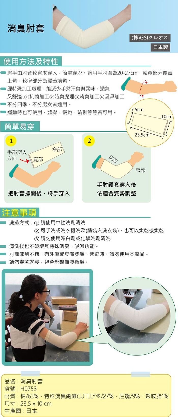◆ 適用手肘受傷者 長時間使用電腦者 愛運動者使用 ◆ 材質舒服 透氣防臭 除濕 ◆ 不分男女 皆可使用 ◆ 日本製造品質有保障
