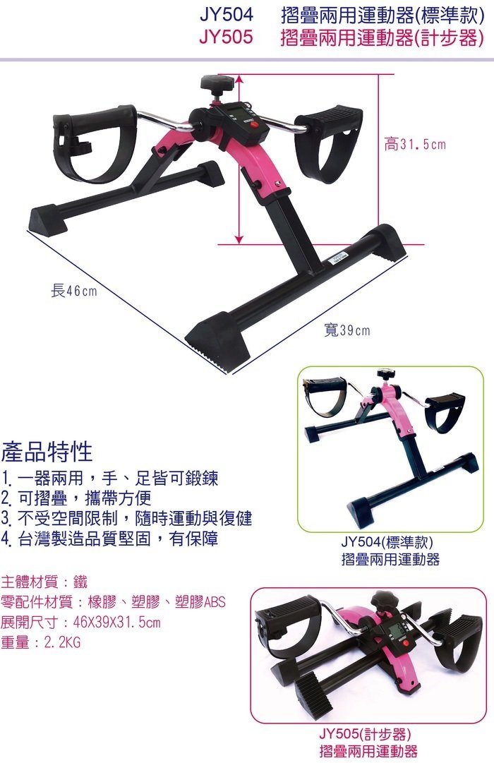 ◆ 腳踏運動 阻力可自行調整 ◆ 放在桌上 亦可運動手部及肩部 ◆ 可折疊 攜帶方便 ◆ 附計步器 可計算轉速、次數、熱量、時間 ◆ 台灣製造 品質有保障