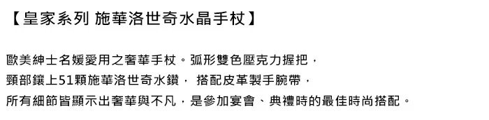 ◆ 手杖結構:皇家系列 施華洛世奇水鑽 兩段式手杖
