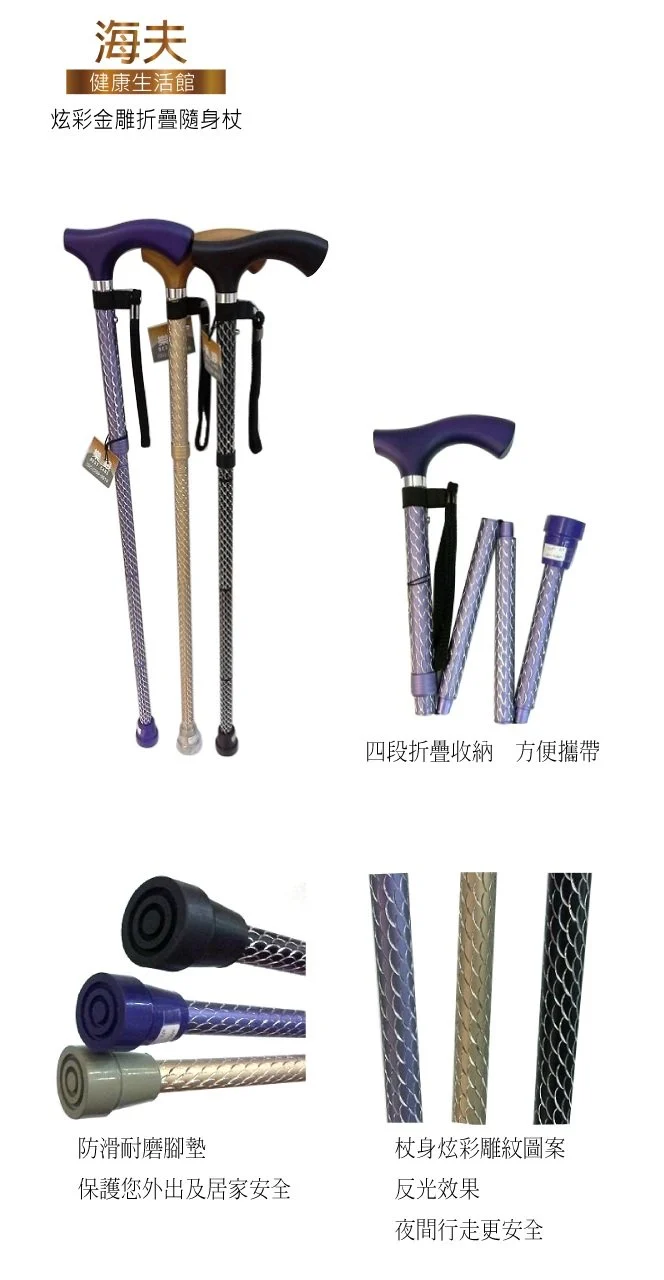【海夫健康生活館】炫彩金雕折疊隨身杖