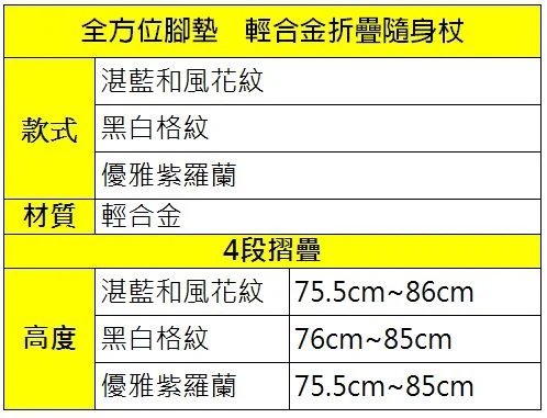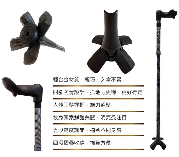 ◆ 輕合金材質 四腳防滑設計 穩定輕鬆 ◆ 四折折疊 登山、旅行都方便 ◆ 五段調高 適合不同身高
