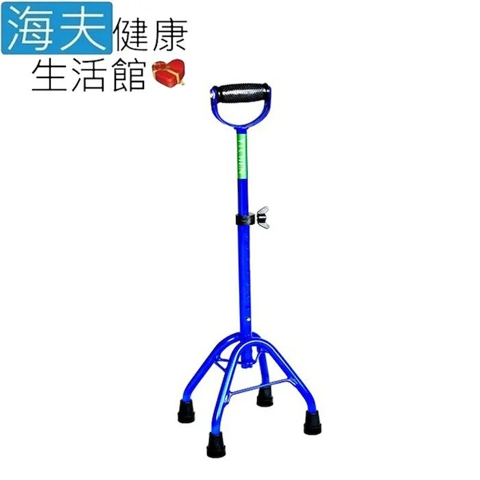 (D)頤辰億 醫療用手杖(未滅菌) 【海夫健康生活館】頤辰 鋁合金可調式 四腳拐 中爪U型 手杖 寶藍色(YC-942L-A)