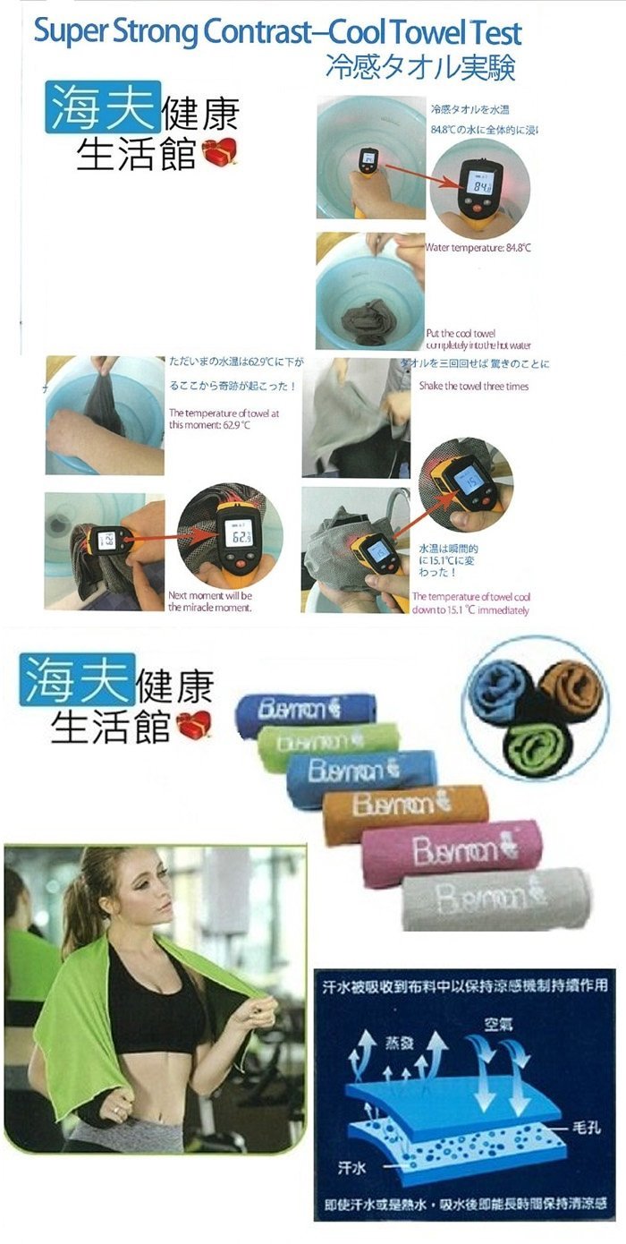 ◆冰涼試驗:放入84.4℃熱水中拿出來濘乾甩3下 瞬間冰涼 至15.5℃