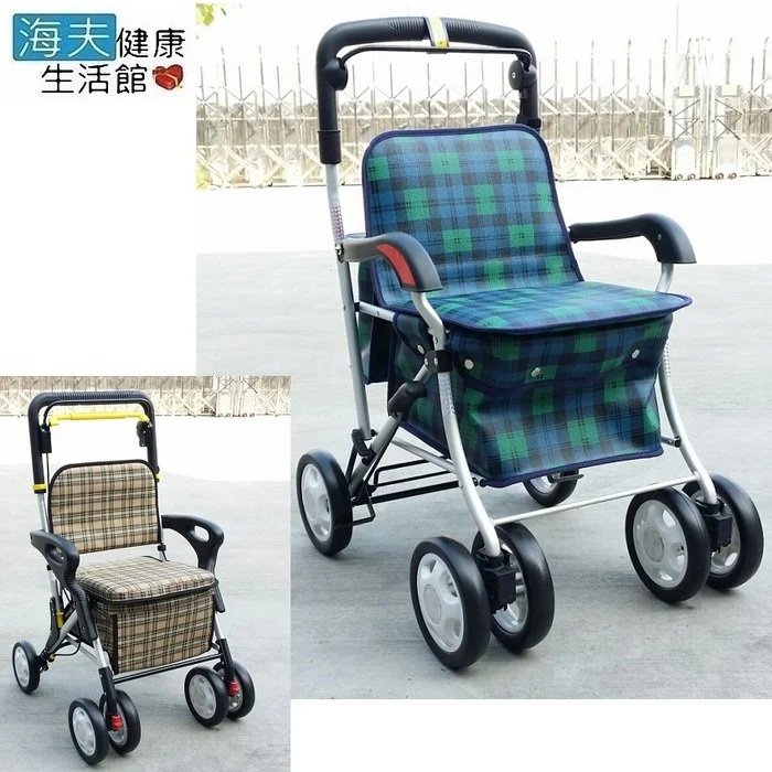 【海夫健康生活館】恆伸 超輕型 銀髮族 四輪散步 有扶手購物車 置物袋助行車(ER-238/328)
