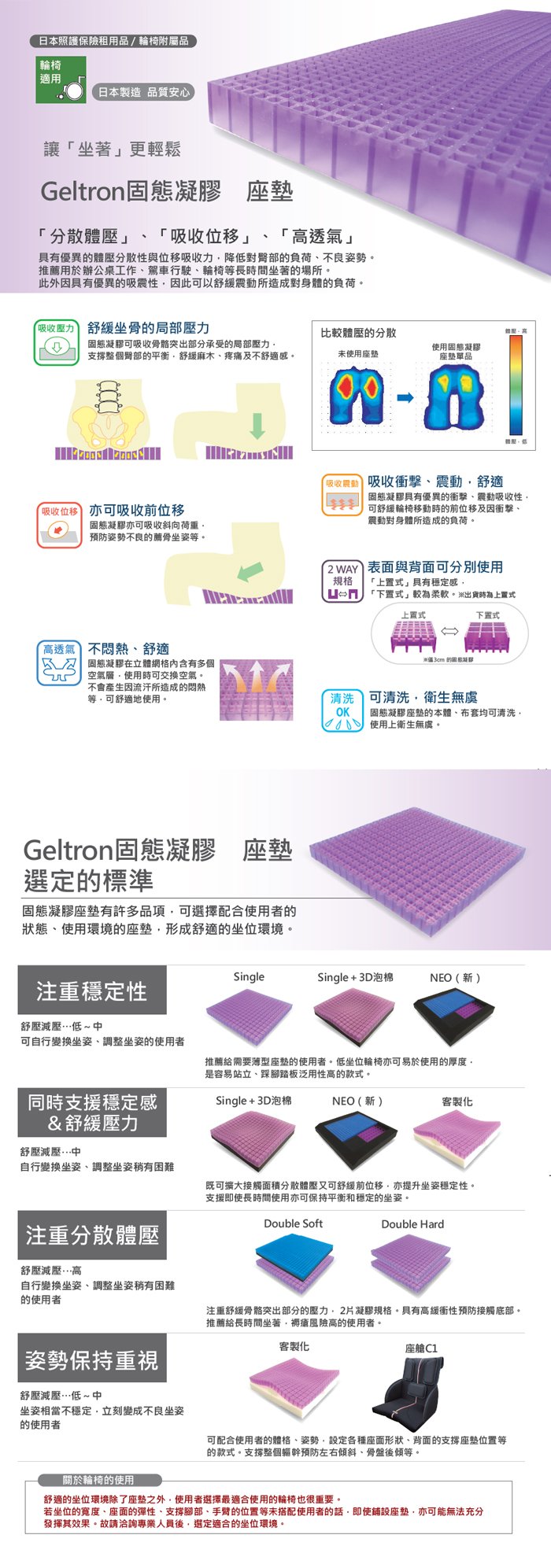 – 本體內部:Geltron固態凝膠+高透氣泡棉