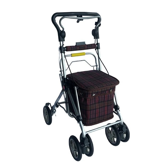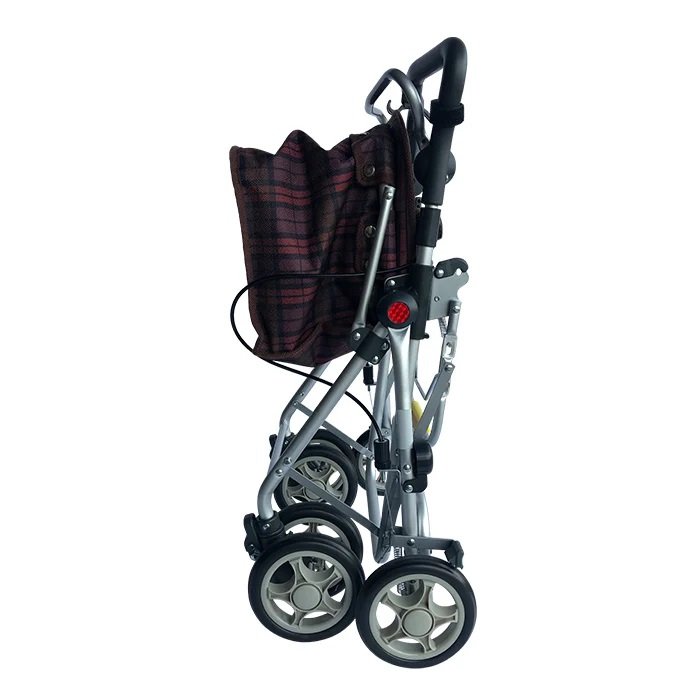 【海夫健康生活館】YL 高度調整 煞車 摺疊 銀髮族 購物助行車 步行輔助車 紅色格紋(NO.335-02)
