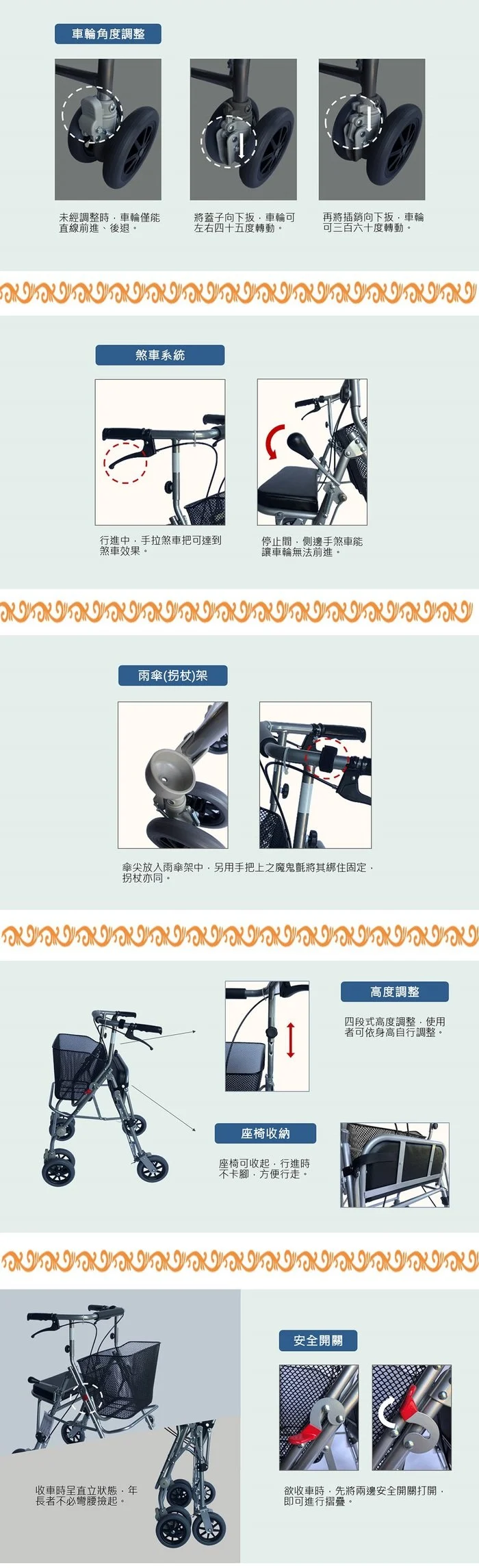 ◆ 車身功能:高度調整四段,煞車系統,折疊收納