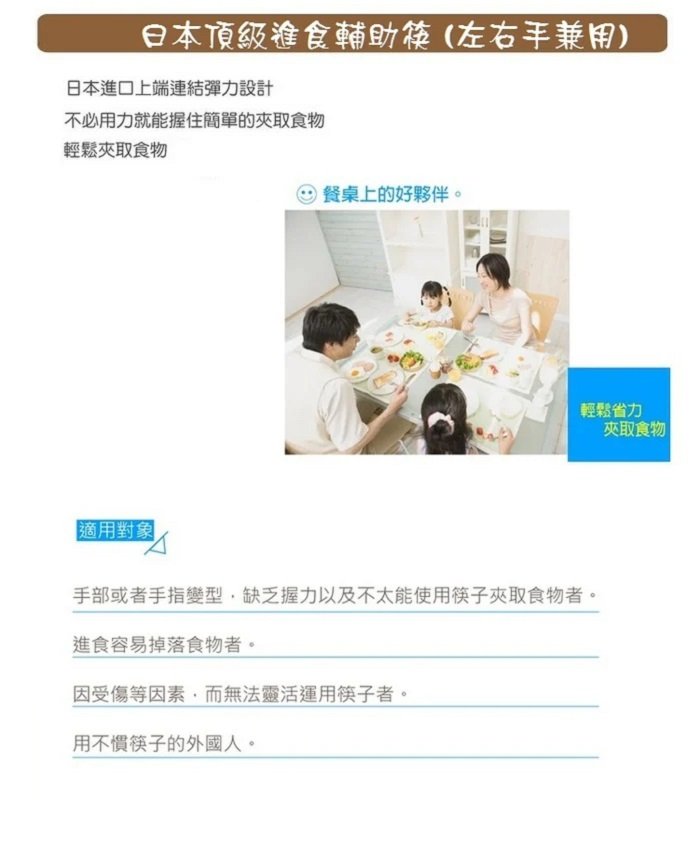◆ 針對關節不靈活的長輩所設計的輔助筷