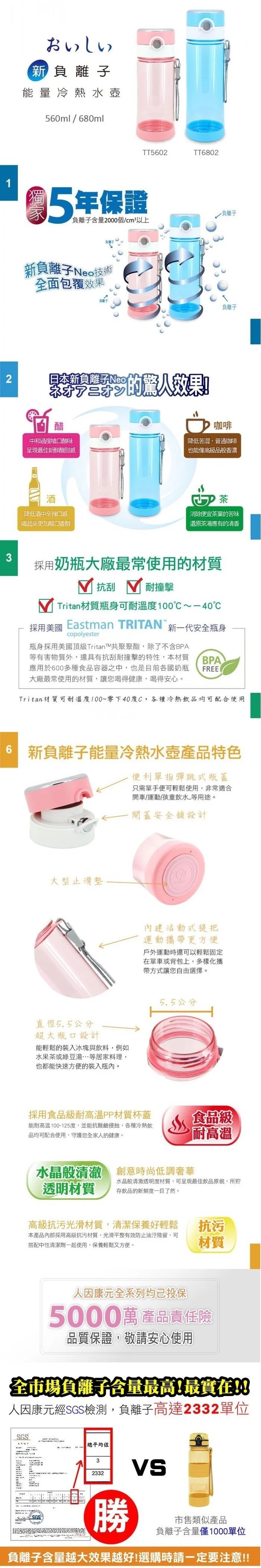 (D)【人因康元x海夫】新負離子 能量 冷熱水壺 680ml (TT6802)