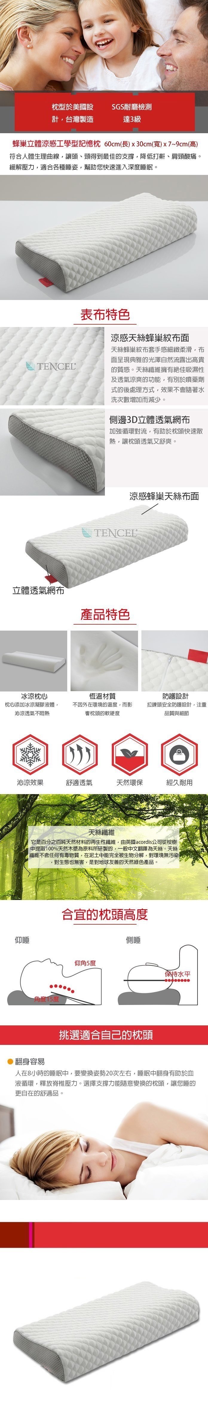 ◆ 材質:枕心 – 記憶綿+冰涼凝膠液體,表布 – 天絲纖維