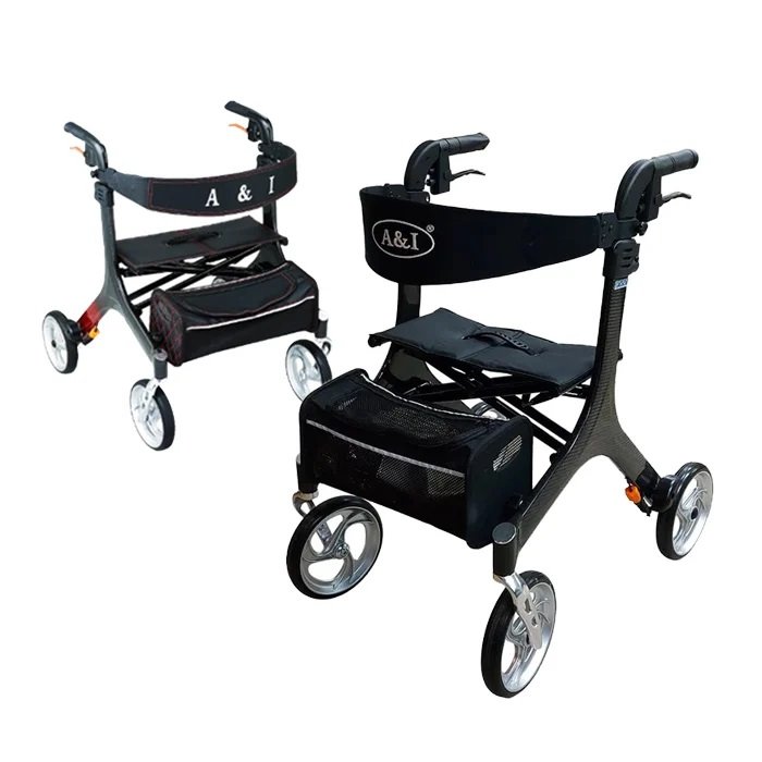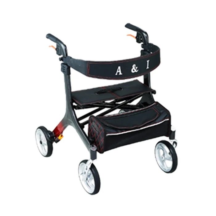 (R)康復 四輪機械式助行器(未滅菌)【海夫健康生活館】輔聚 安愛 碳纖維四輪車 帶輪型助步車(Carbon)