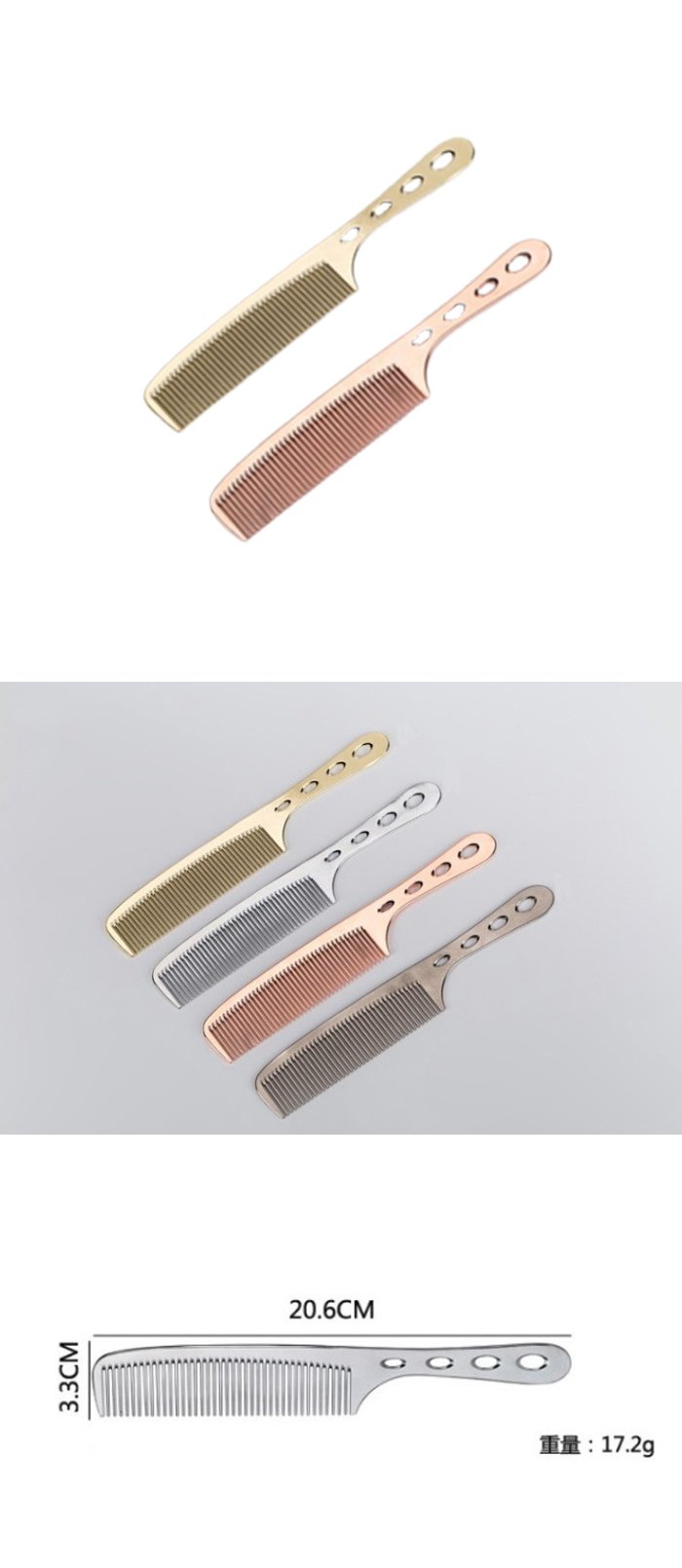 (D)【海夫健康生活館】羅拉亞 髮廊專用 防静電不锈鋼理髮鋁梳 大關刀梳 雙包裝(金色/玫瑰金)