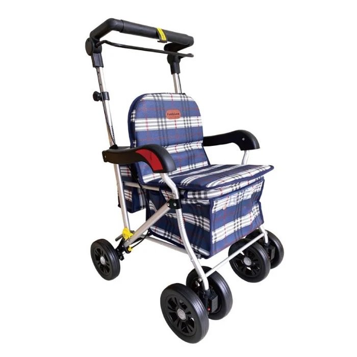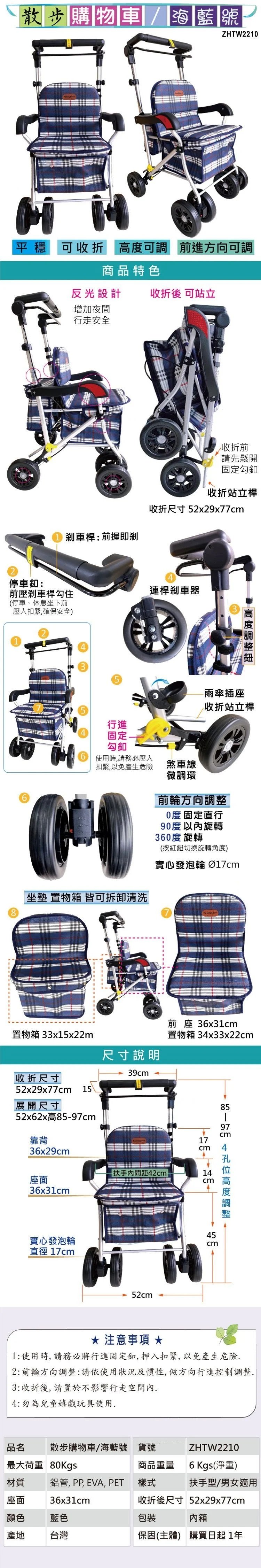 【海夫健康生活館】RH-HEF 高度可調 手煞車/坐墊/折疊收納 散步購物車 海藍號(ZHTW2210)