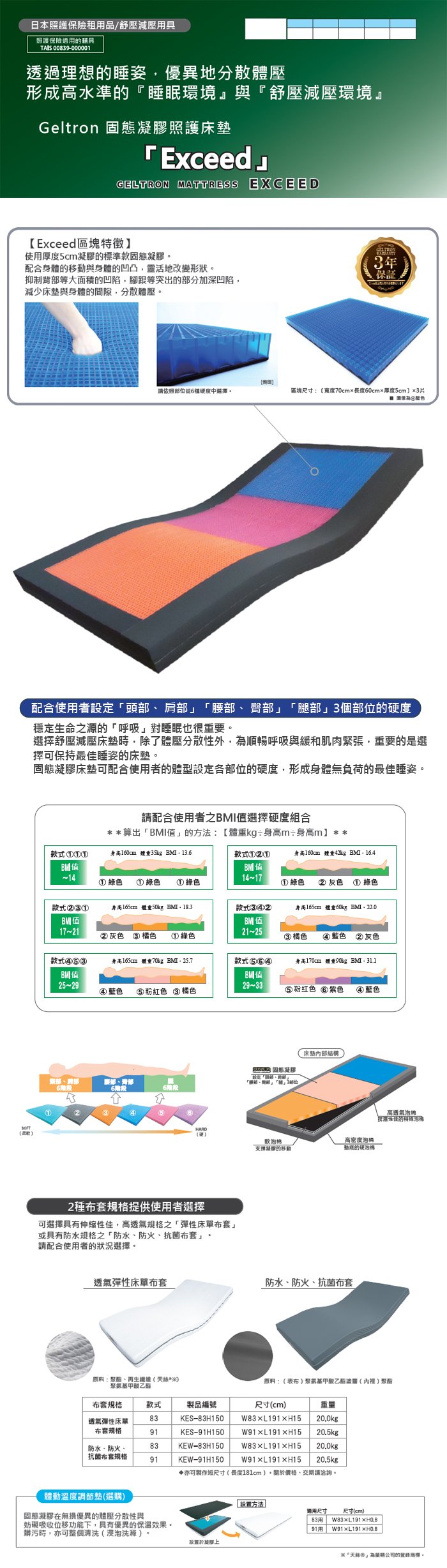 ◆ 品名:【海夫健康生活館】Geltron Exceed 固態凝膠照護床墊 抗菌床套(KEW-83H150)