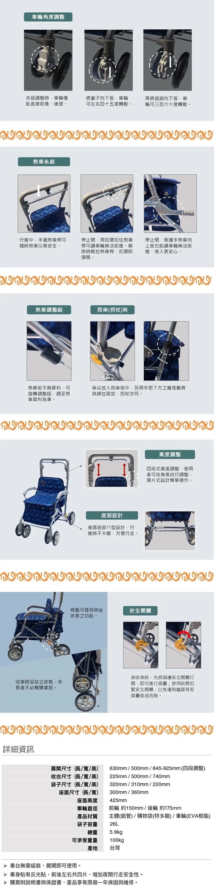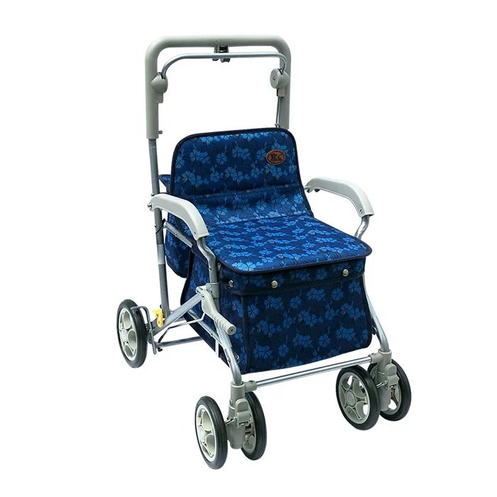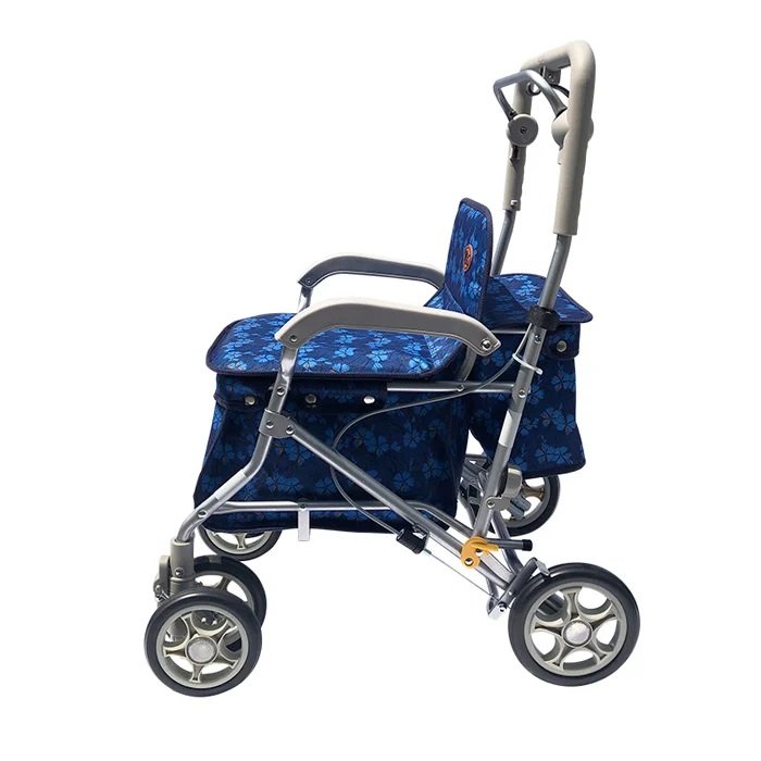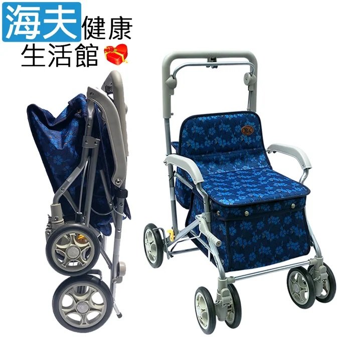 【海夫健康生活館】YL 高度調整 煞車 摺疊 收納站立 銀髮族 購物助行車 步行輔助車 藍底藍花(NO.165-36)