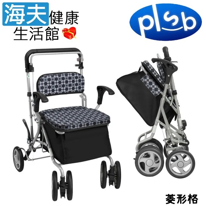 (D)【海夫健康生活館】勝邦福樂智 日本SHIMA_BITO多功能簡易操作散步購物車(菱形格)