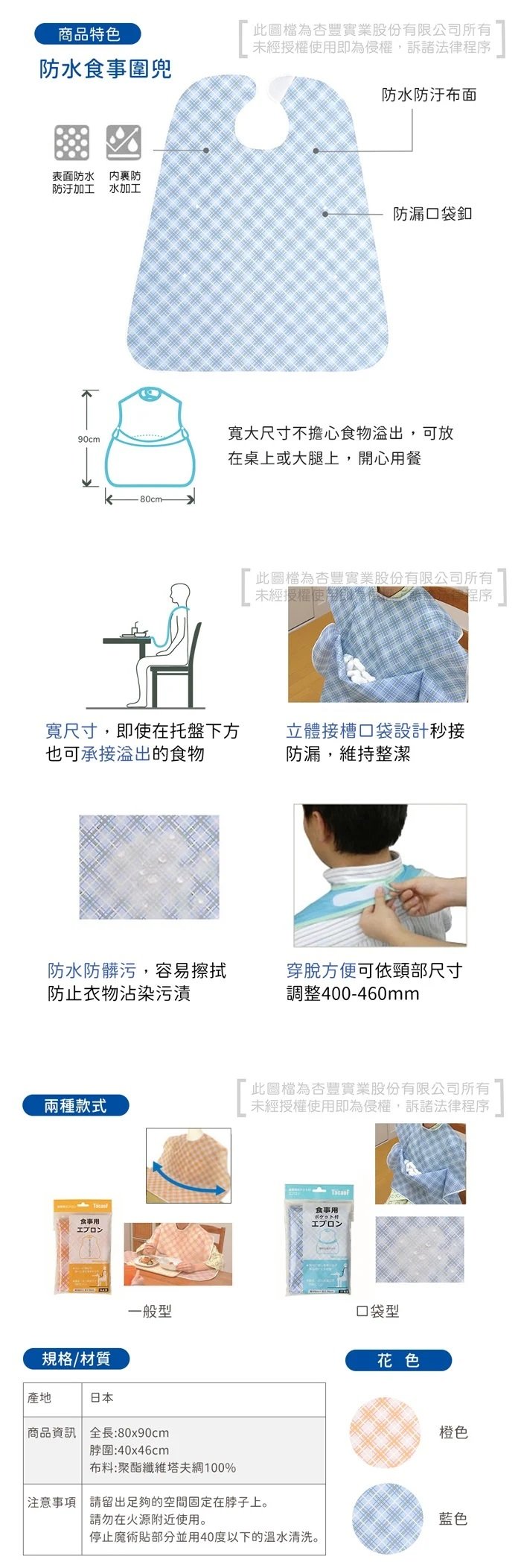 【海夫健康生活館】HEF TacaoF幸和 食事用防水圍兜 口袋型藍色(R317)