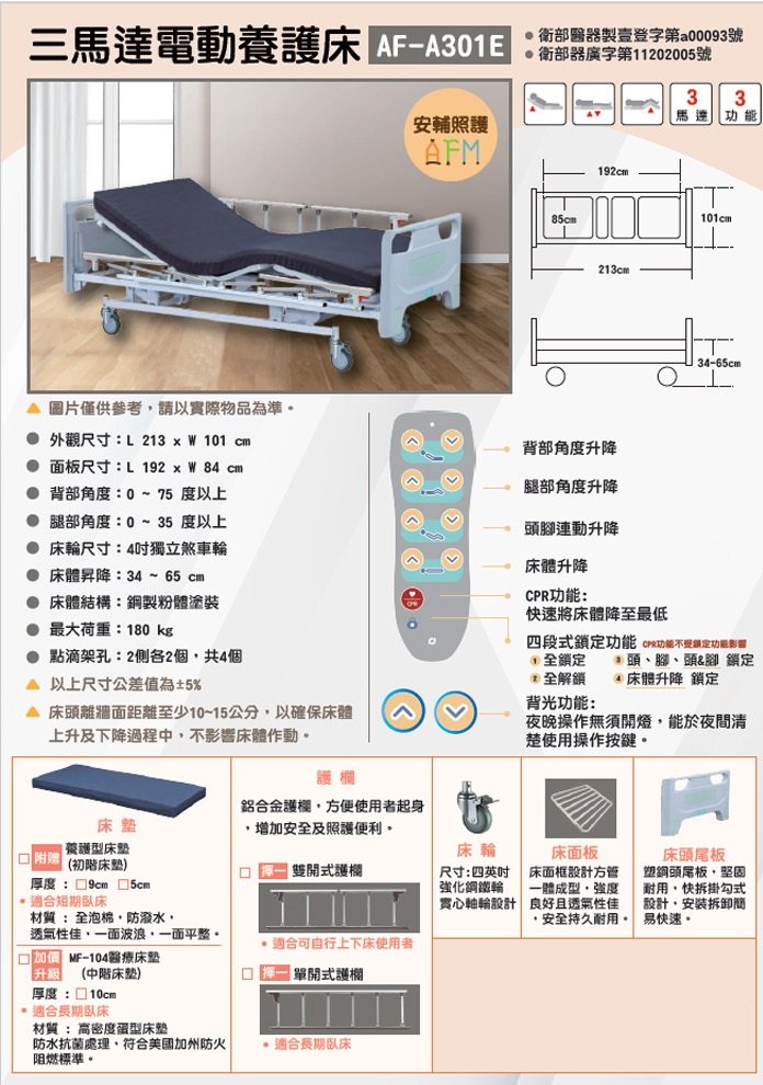 品名:安輔照護 交流電力可調整式病床 (未滅菌)