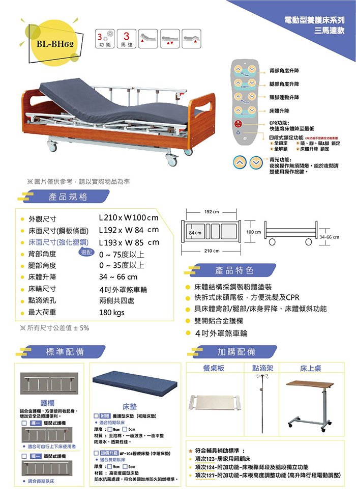 倍愛非動力式治療床墊(未滅菌)【海夫健康生活館】亞護 倍愛 三馬達電動養護床 雙開式護欄(BL-BH62)