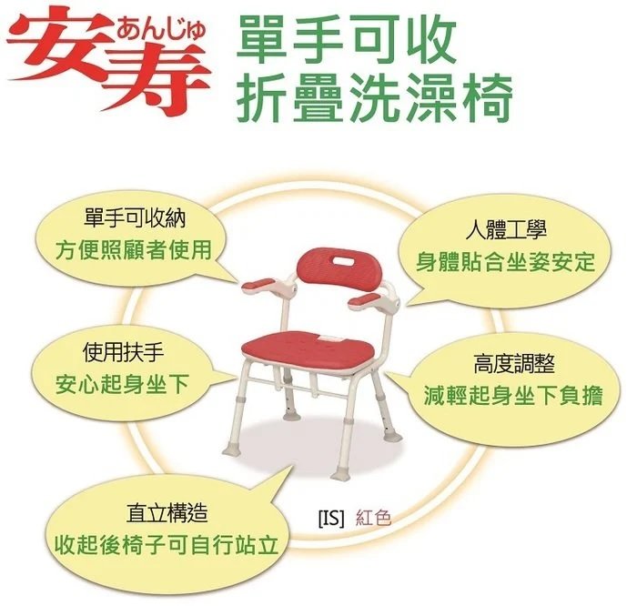 搶先評價 “【海夫健康生活館】佳樂美 日本安壽 單手可收摺疊洗澡椅 IU(藍/紅/綠)” 取消回覆