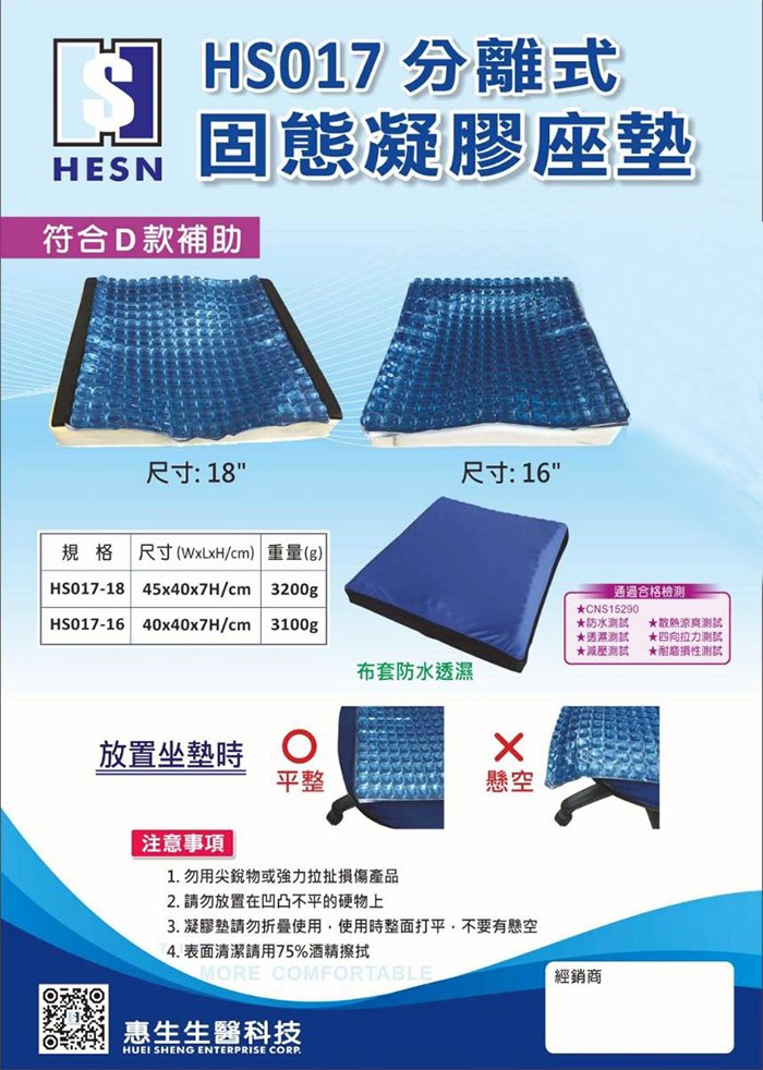 品名:”惠生” 凝膠座墊 (未滅菌)