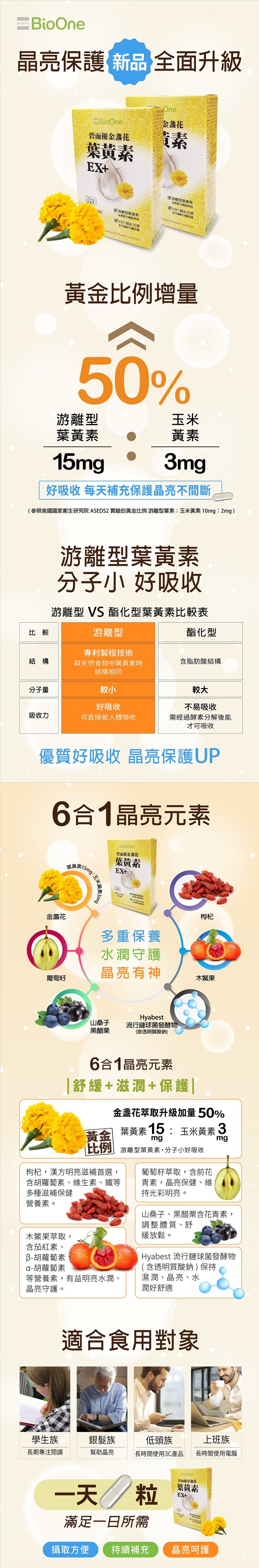 ◆ 專利游離型葉黃素 黃金比例好吸收