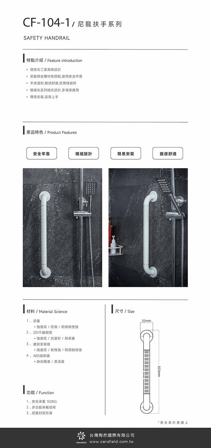 搶先評價 “【海夫健康生活館】台灣陶然 工業風格 無障礙1字尼龍扶手 500mm (CF-104-1)”